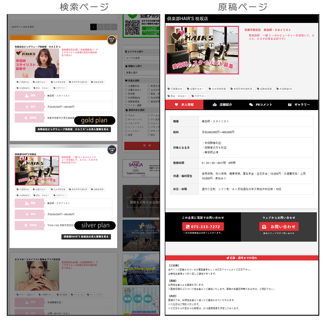 Googleへの掲載をはじめ、SEO、キーワード対策と言った様々な検索エンジンへの対応を実施しておりますので、安定したアクセス数を得る事ができます。専門サイトである事により、即戦力となる経験者の方や、意欲の高い未経験者の方まで幅広くご応募を頂いております。時代に沿ったサイト作りで他社との差別化を図り、費用対効果と、質の高い求人を目指しています。また求人情報の他にも、様々なコンテンツで企業様の情報を豊富に詰め込んで頂けます。今後も様々なサービスやコンテンツとの連携により、ご利用者様に